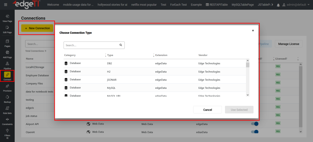 In order to present data in visualizations, edgeCore first needs to know where the data is coming from. Connections can be made to a variety of different data sources. Feeds off of these connections are then used to pull in raw data.