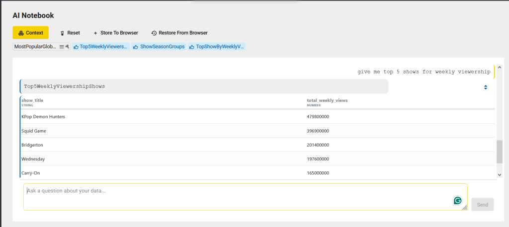 The AI Notebook transforms how you work with data. Instead of writing queries, building charts, or learning complex tools — you just ask questions in plain language, and the Notebook does the rest.
